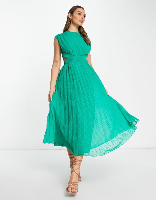 ASOS DESIGN dobby sleeveless midi dress with cut out and open back in green Very well made.