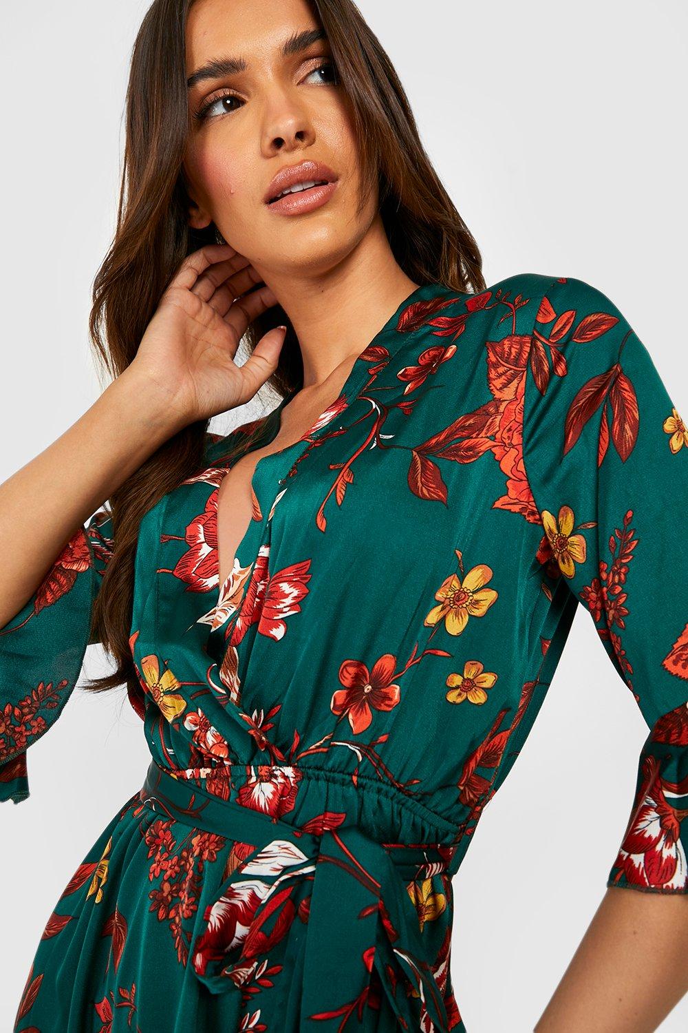 Lifetime Green Floral Print Satin Cowl Neck Maxi Dress With Cross Very well made.