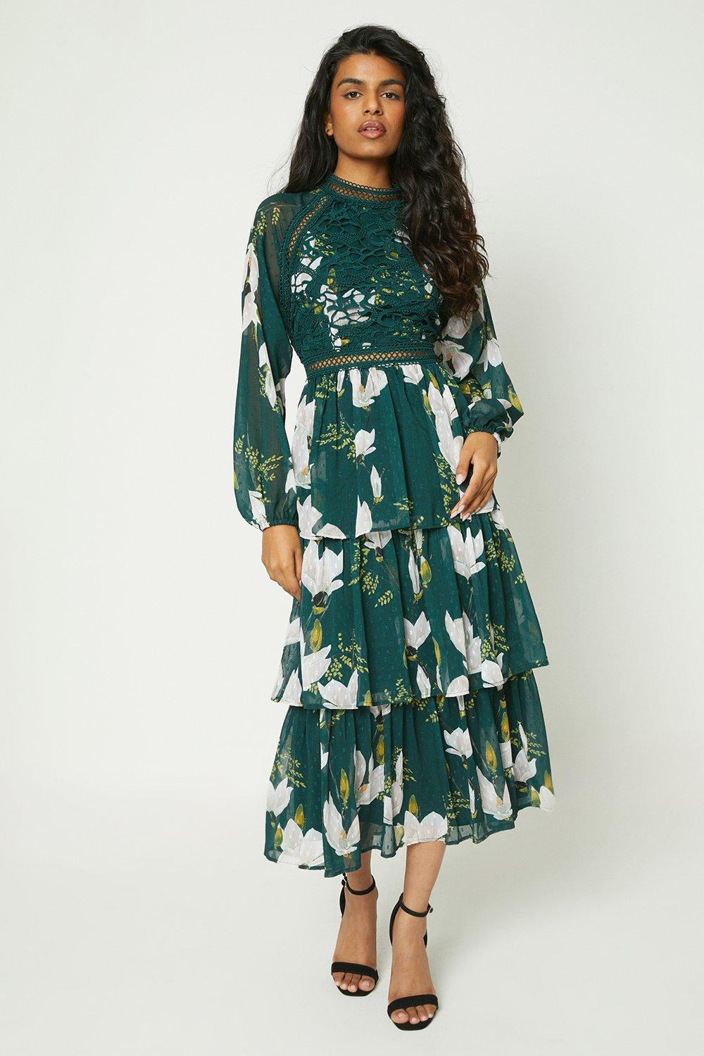 Oasis Strappy Lace V Neck Pleat Midi Dress in Green Lyst UK Very well made.