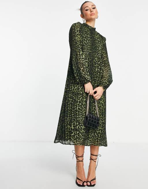 Envii pleated maxi smock dress in olive leopard print ASOS Very well made.