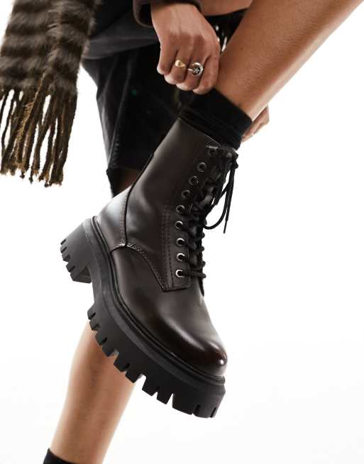 Stradivarius chunky sole tie up boot in washed brown ASOS Very well made.