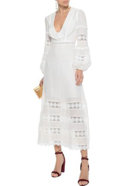 Zimmermann Woman Castile Plunge Crochet trimmed Linen Midi Dress Very well made.