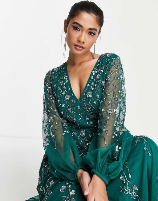ASOS DESIGN Robe longue avec manches blousantes et ornements fleurs d licates Very well made.