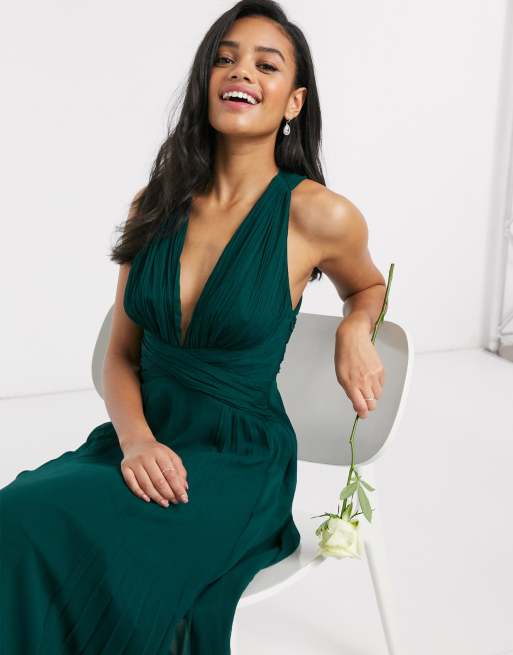 ASOS DESIGN Robe longue taille torsad e avec d coupe au dos Vert for t d lav Very well made.