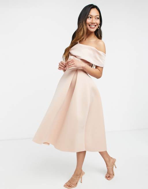 ASOS DESIGN fallen shoulder prom midi dress in rosedust Very well made.