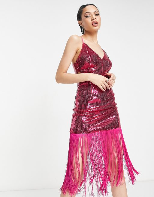 Collective the Label exclusive cut out sequin fringe dress in hot pink Very well made.