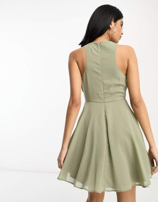 ASOS DESIGN Robe patineuse courte paules tombantes avec liens nouer Vert for t Very well made.