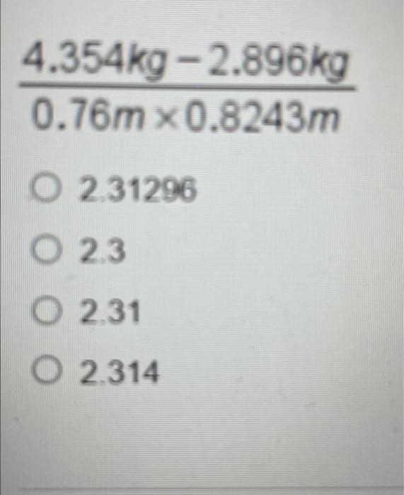 Solved 4.354kg 2.896kg 0.76m x 0.8243m 0231296 O 23 0 2.31 Very well made.