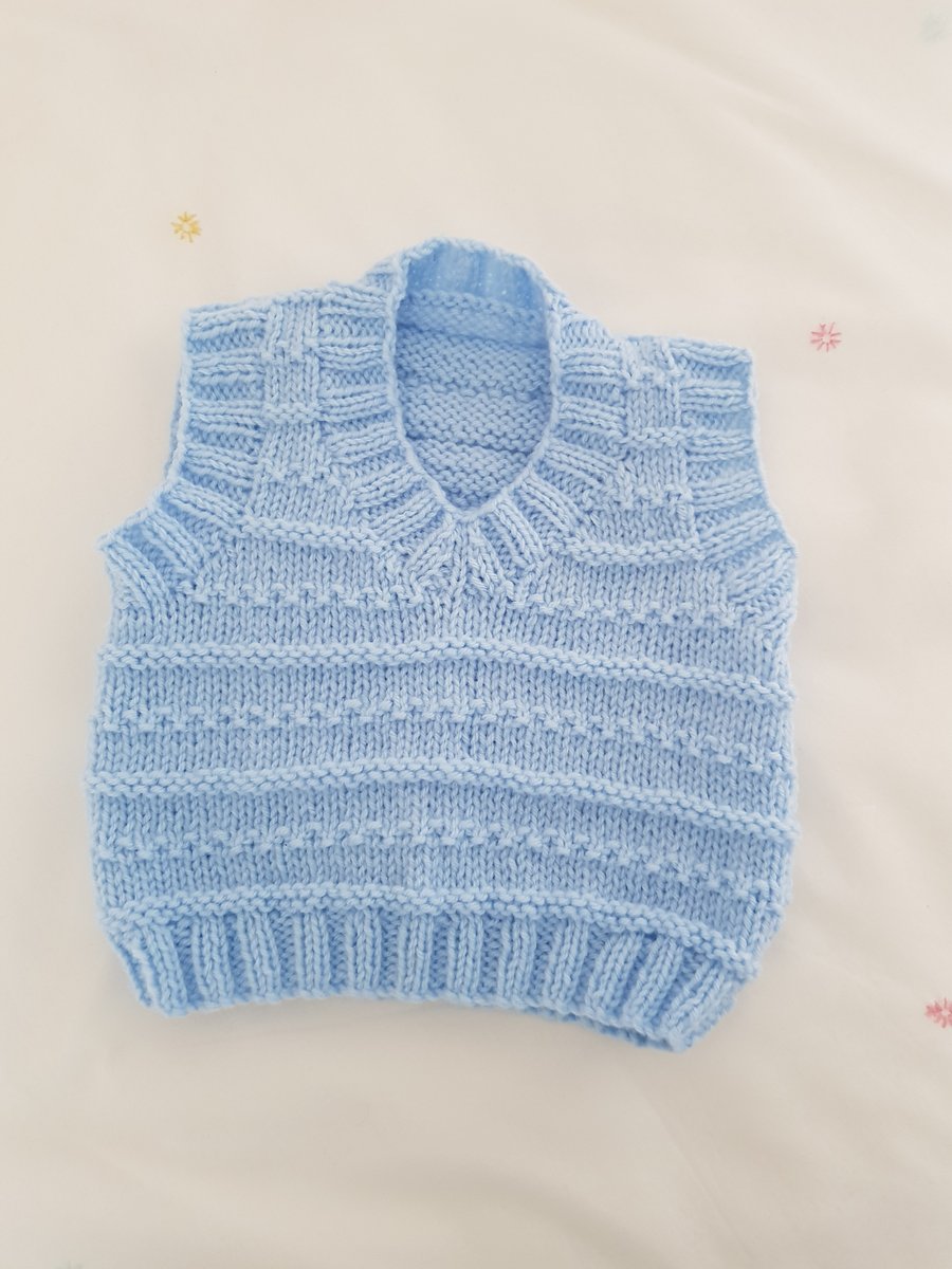 Baby Blue Hand Knitted Sleeveless Jumper 0 3 months Very well made.